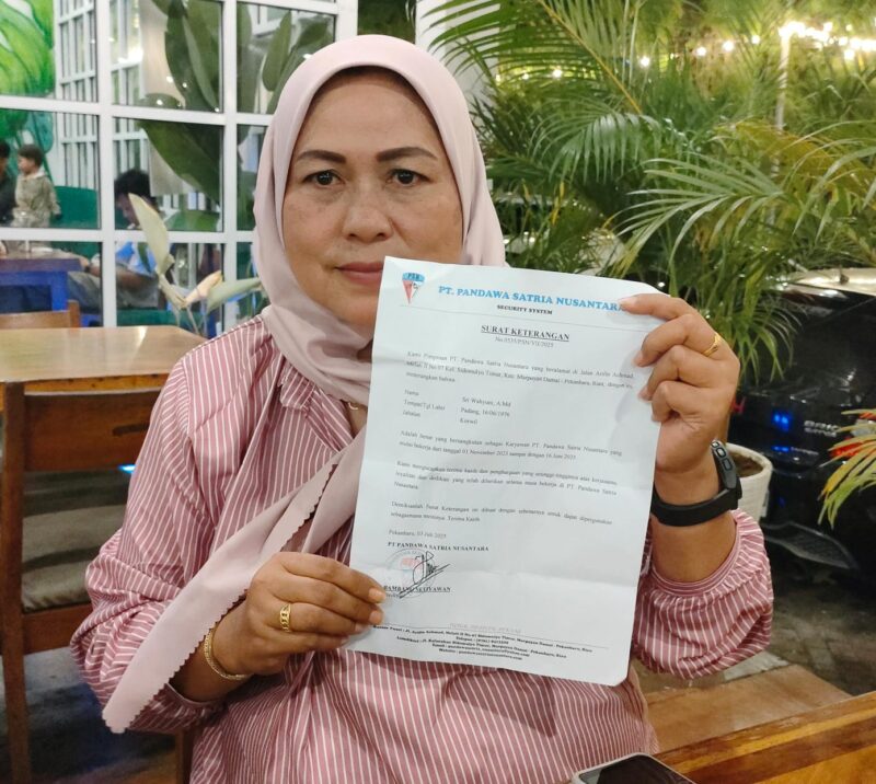 LENSABHAYANGKARA.COM, PEKANBARU – Sri Wahyuni atau akrab disapa Sri, resmi mengadukan nasibnya ke Disnaker Provinsi Riau, terkait pemberhentian sepihak oleh PT. Pandawa Satria Nusantara ( PSN ), yang berkantor di Jalan Melati 2, No. 07, Kota Pekanbaru.