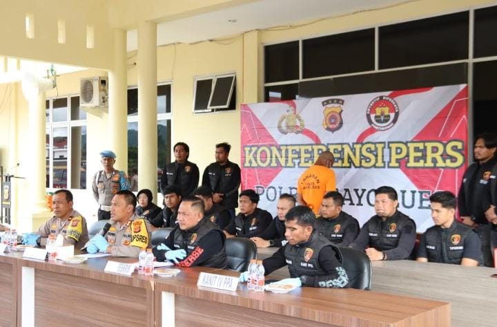 Blangkejeren, 21 November 2025 | Kapolres Gayo Lues AKBP Hyrowo, S.I.K., memimpin langsung konferensi pers terkait pengungkapan kasus jarimah pemerkosaan terhadap anak di bawah umur yang merupakan mahramnya sendiri. Kasus ini berdasarkan Laporan Polisi Nomor: LP/B/105/XI/2025/SPKT/POLRES GAYO LUES/POLDA ACEH, tanggal 19 November 2025.
